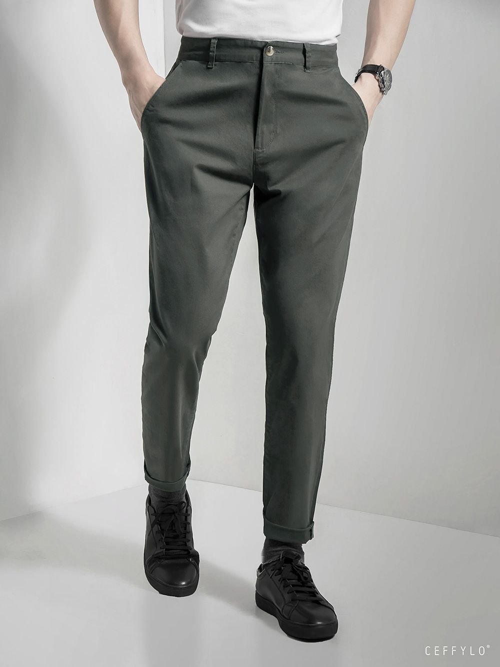 Quần khaki túi chéo Ceffylo – Đen